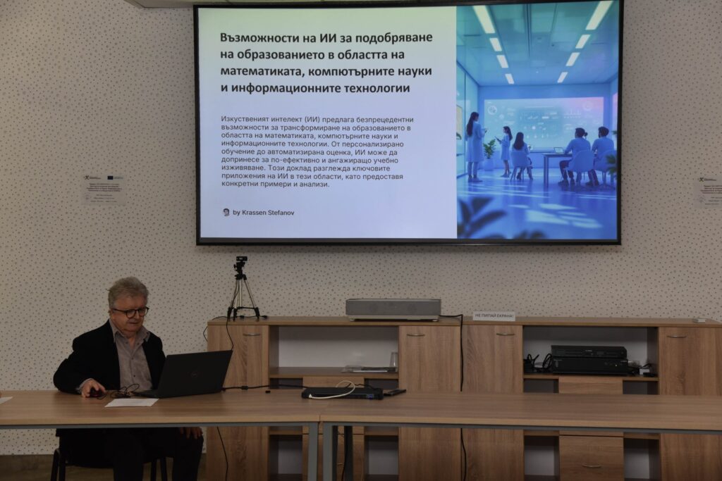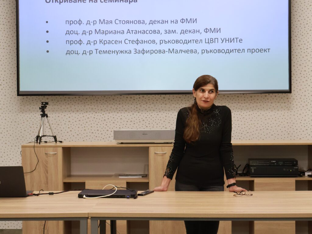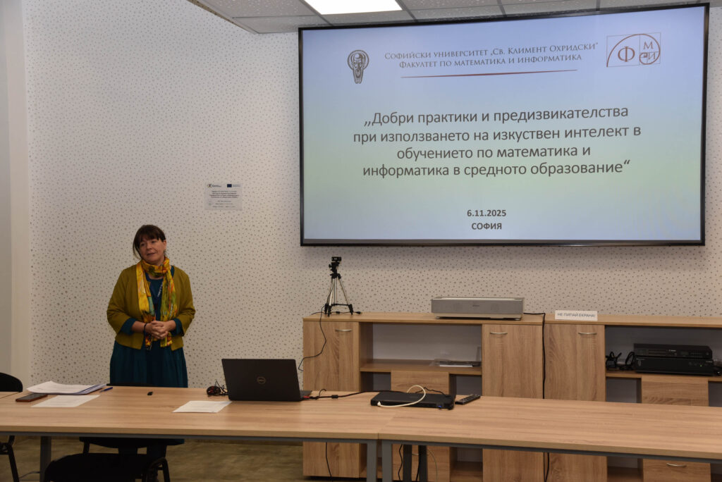 On November 6, 2025, a seminar on “Good practices and challenges in the use of artificial intelligence in mathematics and computer science education in secondary education” was held in the conference hall of the Center of Excellence UNITe at the Sofia University “St. Kliment Ohridski”.