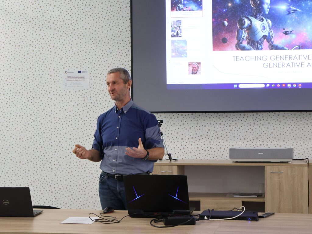 In the last part of the seminar Trayan Iliev presented student developments from the Multi-Agent Systems course, demonstrating practical applications of the artificial intelligence. He underlined that it is important for young people not only to use AI, but also to create their own AI-based solutions. The projects presented inspired the seminar participants to seek opportunities for implementing interdisciplinary and STEM initiatives related to AI, robotics, and new technologies.