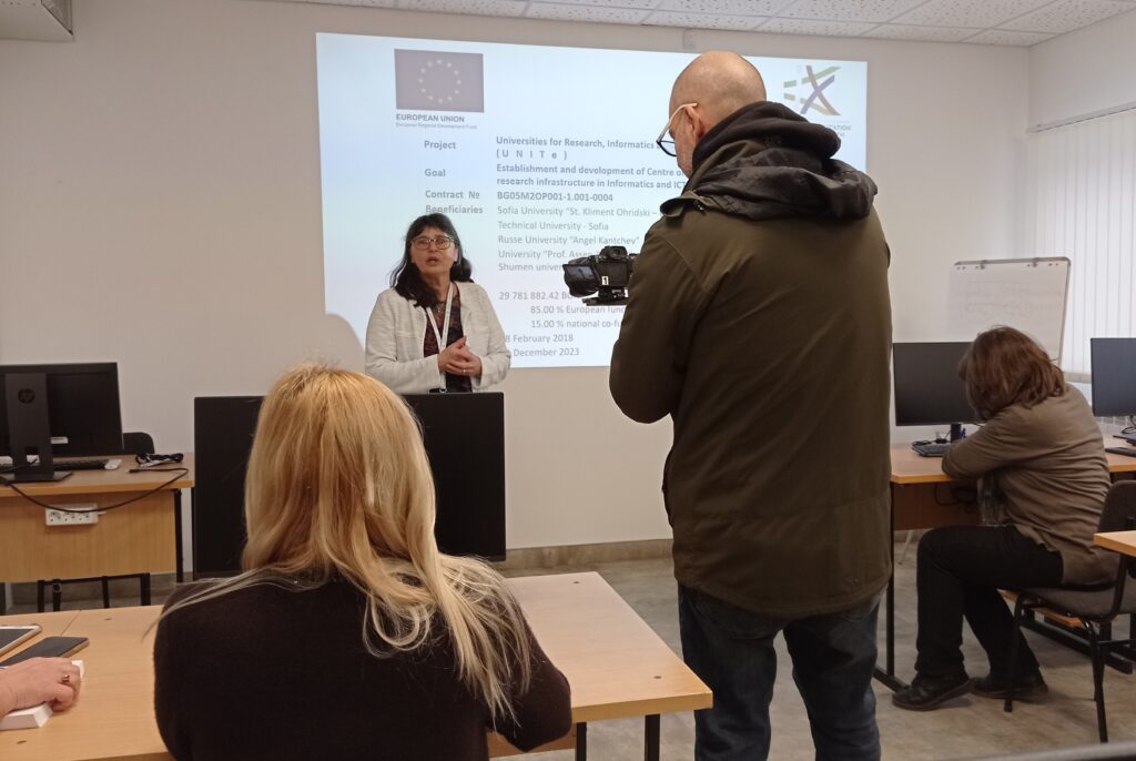 In response to questions related to the impact of European funding, integration into scientific networks, and the strategic goals of the Center of Excellence UNITe, the administrative director of the project Assoc. Prof. Elissaveta Gourova emphasized that support under the EU’s cohesion policy has significantly strengthened the research capacity of Sofia University, increased its attractiveness to young scientists, and contributed to the modernization of education and scientific infrastructure. Among the key results is the creation of a high-performance computing cluster, which is used by students and doctoral students for research and innovation in areas such as artificial intelligence, big data, and modeling, as well as for expanding cooperation with business and the public sector. In her words, integration into European research and innovation networks is an essential factor for increasing the competitiveness of the Bulgarian economy. Participation in such partnerships provides access to cutting-edge knowledge, infrastructure and funding, supports technology transfer, promotes the development of small and medium-sized enterprises, and facilitates the implementation of solutions related to artificial intelligence, digitalization, and the Green transition, while contributing to the development of workforce expertise and skills. In this context, UNITe’s main mission is to consolidate its position as a leading scientific organization in the field of informatics and ICT and to achieve wider international recognition. Among the priorities are attracting and retaining talented researchers, strengthening cooperation between partners and with external organizations, developing technology transfer, and actively participating in European scientific networks in areas such as high-performance computing, big data, and artificial intelligence, as well as supporting the implementation of data-based solutions in various sectors of the economy and public life.