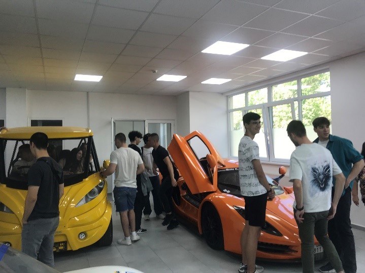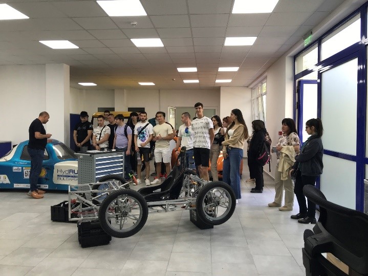 Учениците и техните учители посетиха Научно-изследователският комплекс на университета, където имаха възможността да разгледат иновативни разработки от сферите на автомобилната индустрия, зелените технологии, безпилотните летателни апарати и роботиката.