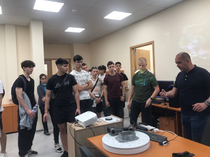 Гостите от СУ „Христо Ботев“ посетиха и Центъра за върхови постижения УНИТе (Проект УНИТе), където се запознаха с новите технологии и тенденциите в сферата на 3D сканирането, 3D принтирането и кинематиката, както и с начините за създаване на цифрово и анимирано съдържание.