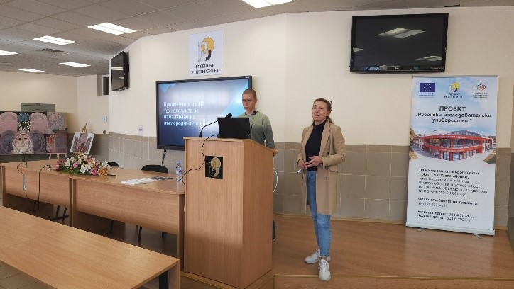 По време на посещението си, гостите от трите училища участваха в обучителни семинари на тема „Приложение на 3D технологиите за намаляване на въглеродния отпечатък“, които бяха организирани специално за тях от преподаватели от катедра Телекомуникации. Обученията приключиха с връчване на сертификати за участие на учениците и учителите, а всеки от тях получи и 3D принтиран сувенир – фигурка символизираща връзката между 3D технологиите и карбоновия отпечатък. Всички сувенири бяха изработени чрез принтерите в 3D Makerspace – споделеното пространство за креативност, което бе открито наскоро в зала 6.302 на Русенски университет.