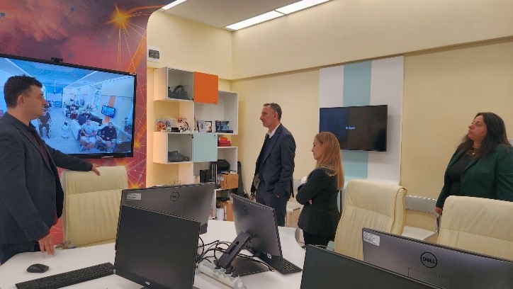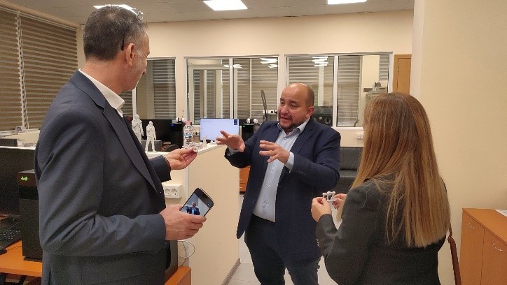 В края на деня, гостите от Турция посетиха и Центъра за Върхови Постижения УНИТе (Проект УНИТе), който е изграден по проект BG16RFPR002-1.014-0004, финансиран от Програма „Научни изследвания, иновации и дигитализация за интелигентна трансформация“ 2021-2027 г. и съфинансиран от Европейския съюз. В сградата на ЦВП УНИТе те се запознаха с основните задачи, дейности и резултати от изследванията на учените в центъра. За финал, гостите разгледаха специализираното оборудване в лабораториите по 3D дигитализация, кинематика, 3D принтиране и 3D визуализация на центъра.