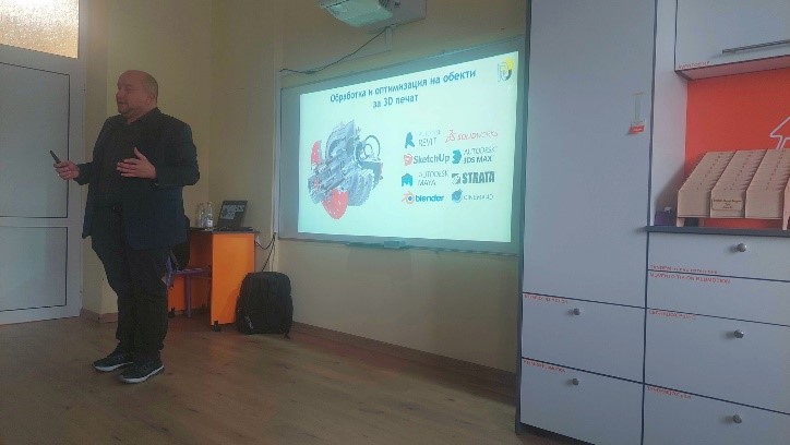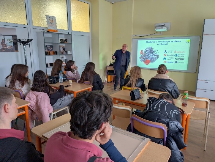 В рамките на обучението, проф. Христов и проф. Захариев представиха пред учениците и техните учители дейностите по 3D дигитализация и визуализация на Центъра за Върхови Постижения УНИТе (Проект УНИТе), който е изграден по проект BG16RFPR002-1.014-0004, финансиран от Програма „Научни изследвания, иновации и дигитализация за интелигентна трансформация“ 2021-2027 г. и съфинансиран от Европейския съюз.