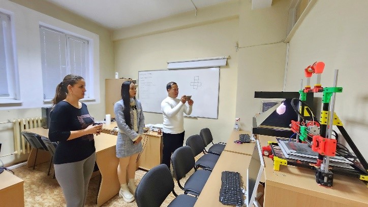 Основната задача на посещението на преподавателите от Лаос в Русенски университет бе участието им в обучение в сферата на информационните и комуникационните технологии. Проф. Георги Христов и гл. ас. д-р Дияна Кинанева, от Катедра „Телекомуникации“, представиха пред гостите съвременните 3D технологии за дигитализация и визуализация на обекти и съвременната материална база на Русенски университет за обучение и провеждане на изследвания в тази област. За финал на обучението, проф. Христов и д-р Кинанева демонстрираха на Конесаван Норасане и Сабанга Сакбуавонг как може да се създаде висококачествен 3D модел на човешко тяло, който след това да бъде разпечатан на 3D принтер, а гостите проявиха желание да бъдат доброволни модели в процеса и за спомен получиха своя собствена 3D принтирана фигурка.